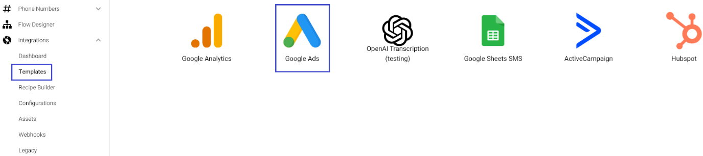 Now click on Templates from the Integrations section & then select Google Ads