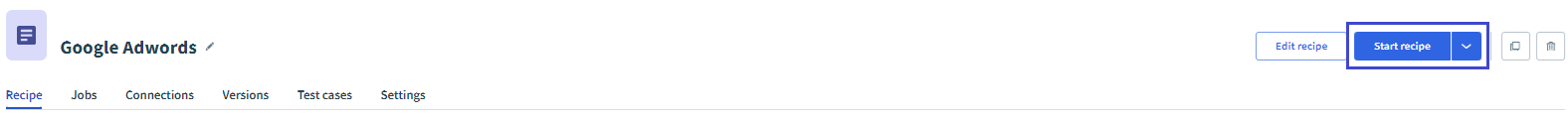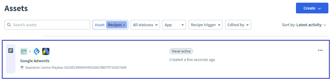 Click on Assets & then select the Google Adwords recipe to start configuration