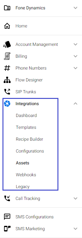 Please proceed to log in to the Fone Dynamics Platform & navigate to the Integrations section