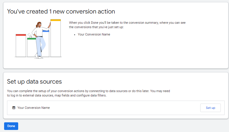 You have now created your conversion. Once you click "Done", have your Customer and Conversion Action ID at hand, you will need them while configuring the integration in our platform.
