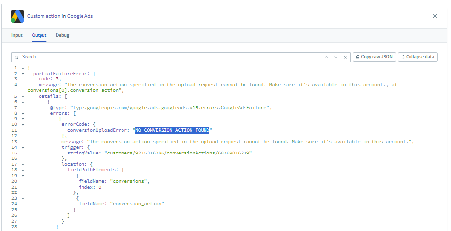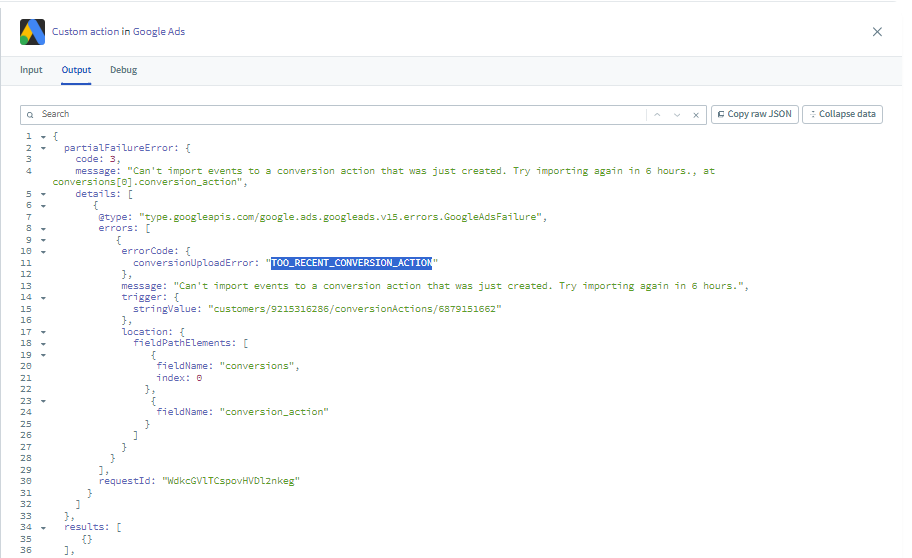 Note: Failing to add the correct Conversion Action ID will result in an error when you action the integration.