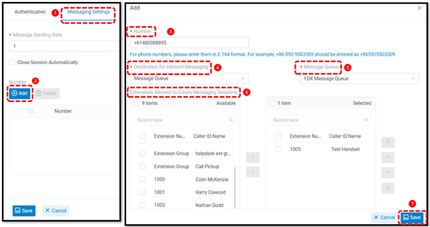 Configuring number for SMS in FDX platform