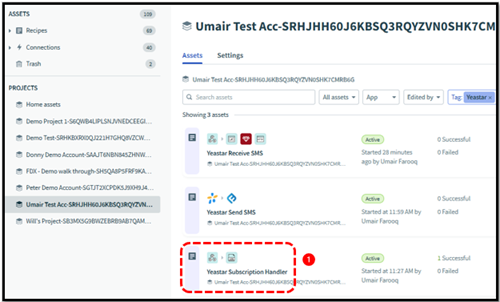 Step-1 | Click ‘Yeastar Subscription Handler’ asset |